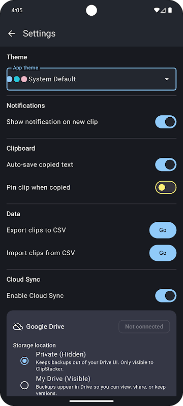 • پرائیویٹ ایپ ڈیٹا (چھپا ہوا) بیک اپ کو Drive UI سے باہر رکھتا ہے — صاف اور نجی۔