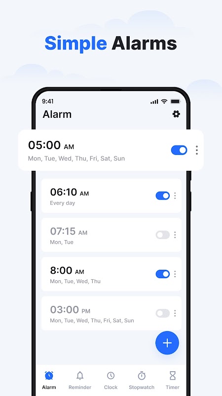 تیزی سے الارم ⏰ سیٹ کرنے کے لیے جمع کے نشان کو تھپتھپائیں۔ اسکرولنگ یا براہ راست ٹائپ کرکے وقت کو آسانی سے ایڈجسٹ کریں۔ ویک اپ ٹاسکس 👨💻، ساؤنڈ 🎶، والیوم 🔊، نوٹ 🗒️، اور آف ڈیٹ جیسے اختیارات کے ساتھ اپنے جاگنے کے تجربے کو حسب ضرورت بنائیں، جو آسانی سے نیچے موجود ہیں۔ اپنی سمارٹ الارم گھڑی کو اپنے انداز کے مطابق بنائیں اور الارم کلاک کے ساتھ آسانی سے بچت کریں۔