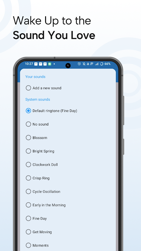 • Choose custom alarm tones or system sounds