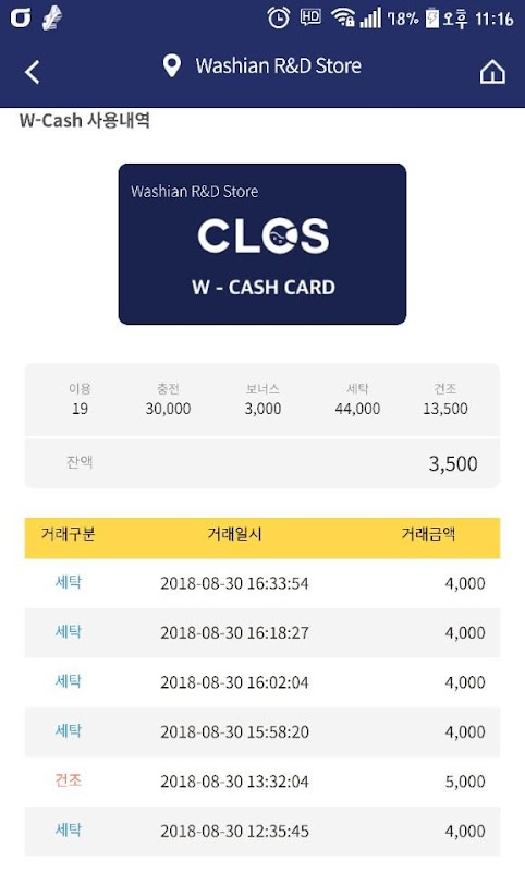 W-Cash를 이용하여 세탁기 및 건조기를 결제하여 사용할 수 있습니다.