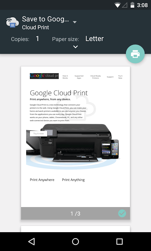 - Print from any compatible Android device to any Google Cloud Print connected printer