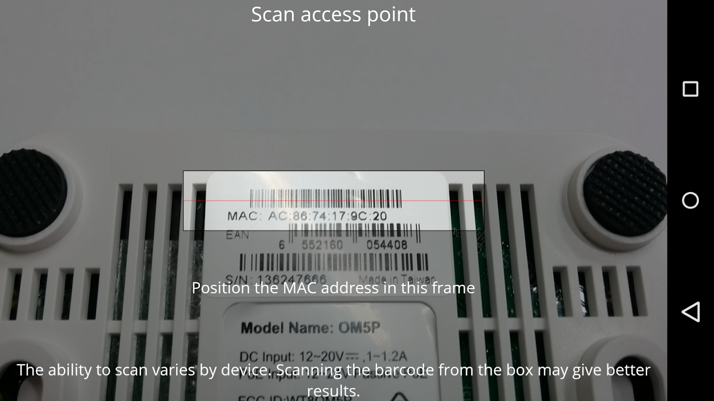• Easy, wizard-driven setup process for new networks. Simply scan an access point with your camera to add it to your network.