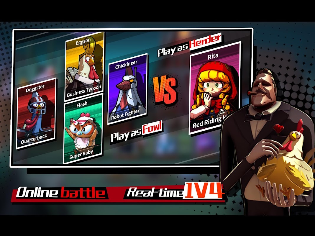 4v1 real-time competitive gameplay! In order to escape and attain their freedom, the running fowl must destroy energy generators to open the No-Harm-No-Fowl Gates. The fowl herder, however, has a different objective: to catch the little pests and roast them for a great chicken dinner. Who will stand victorious once the sun rises?