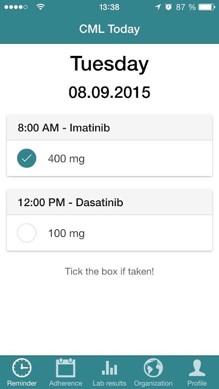 Adherence app for patients with Chronic Myeloid Leukemia (CML).