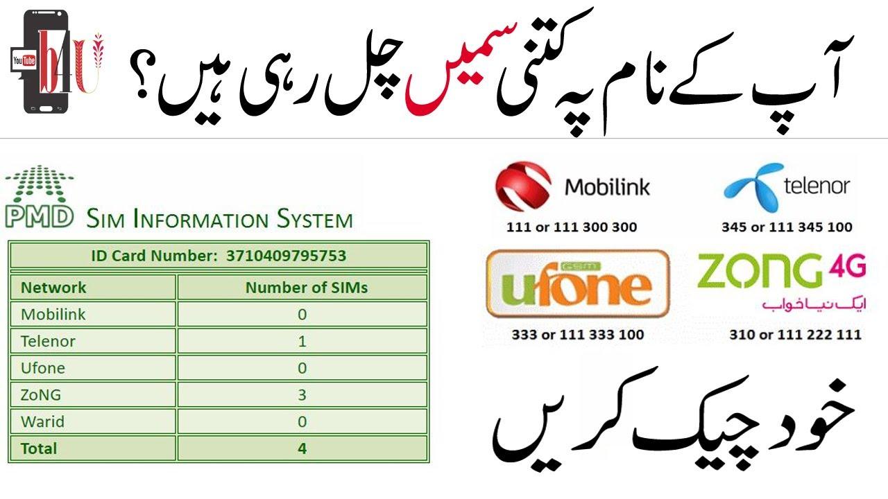SIMs Checker is a simple and useful application which helps you to identify the number of SIMs registered in your name in Pakistan: