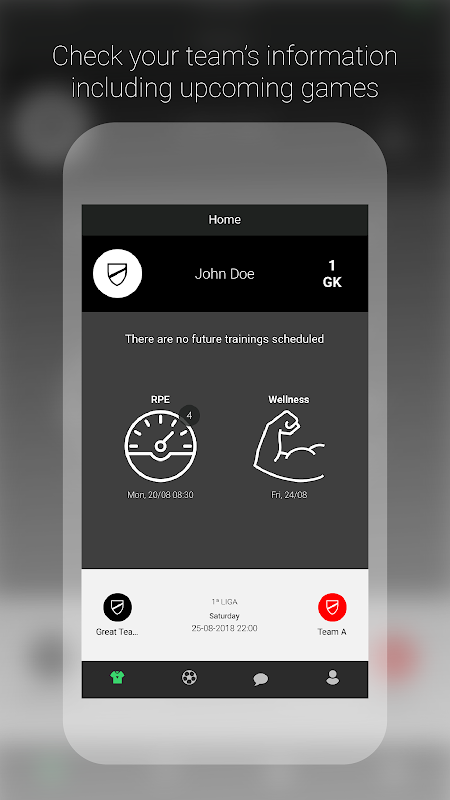 - Call: The player will receive notifications about when he will have training session, time, place and day, as well as if he was called for a game;