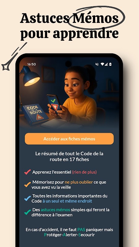 📱 ہزاروں سیکھنے والوں کے ساتھ پہلے ہی Code en poche استعمال کر رہے ہیں، وہ ایپ جو آپ کو ہائی وے کوڈ کا امتحان ریکارڈ وقت میں پاس کرنے میں مدد کرتی ہے۔ جہاں اور جب چاہیں نظر ثانی کریں!