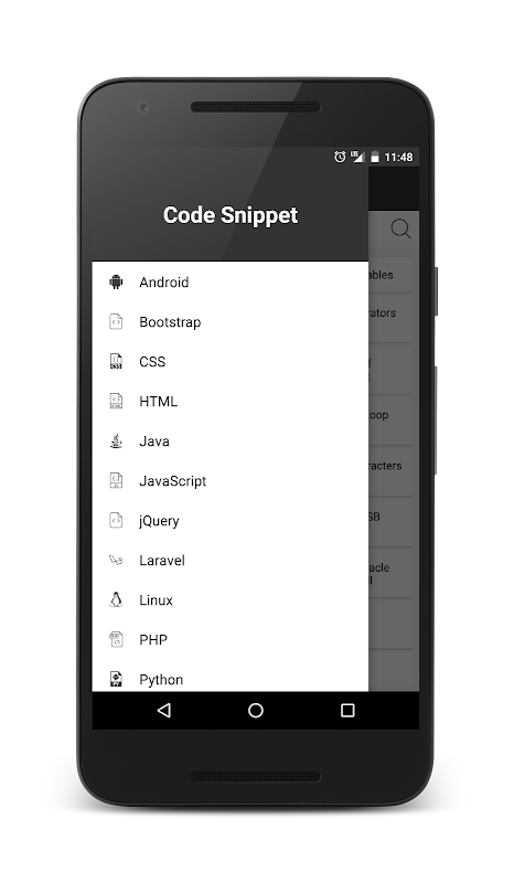 Code Snippet (Code Sheet) is a collection of core code samples in different programming languages and frameworks like Java, HTML, PHP, jQuery, CSS, MySQL, Linux, Linux Server, Android, Bootstrap, Swift, Laravel, Python, and more. You can search about the detail code by clicking on the topic.
