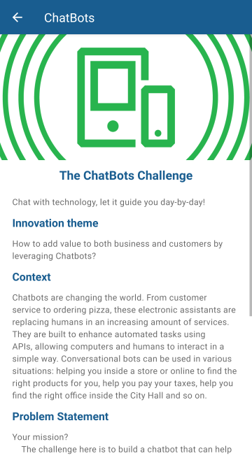You will be able to choose from four different challenges on state of art technologies and let your imagination go wild.