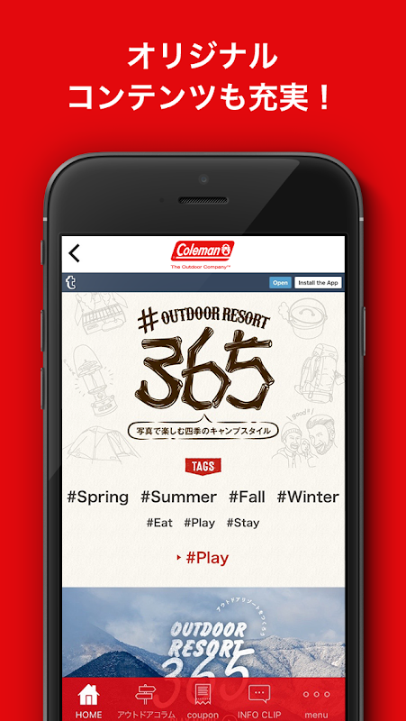 Colemanのキャンプ用品やアウトドアの総合カタログアプリが誕生しました。