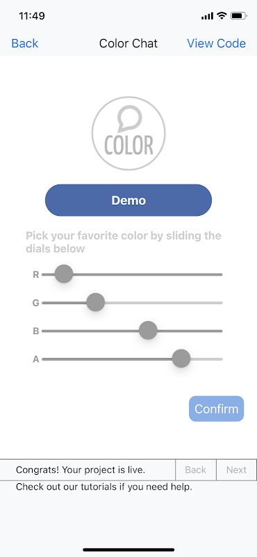 It's a Chatting App through which ANYBODY can chat with ANYBODY ELSE from over the world! It has something which all other chatting apps don't have in them. And that's a colour feature! In my app, users can pick their own colour (through R, G, B & A sliders)and that would be their colour! Their messages worldwide will be shown in that colour only!