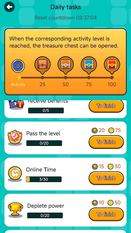 پوائنٹس اور انعامات حاصل کرنے کے لیے لیولز اور ٹاسک مکمل کریں۔ سب سے زیادہ اسکور والے کھلاڑی اضافی ہیرے کے انعامات وصول کریں گے۔
