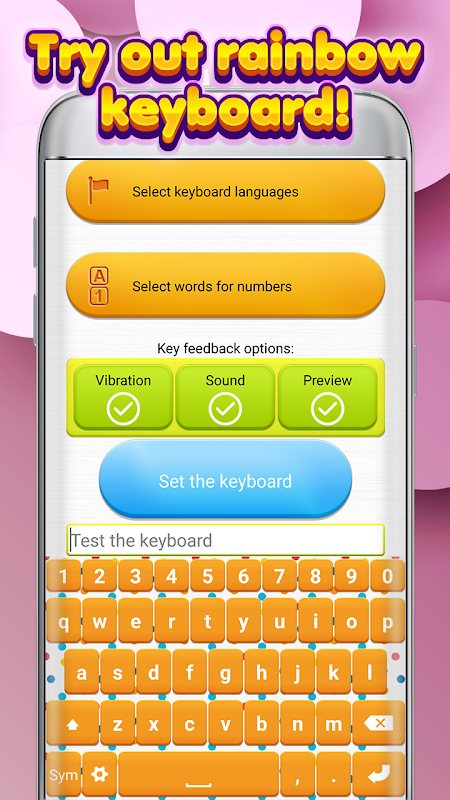 Decorate your keyboard and make it pop! Make bold color combinations and style up your phone! Rainbow themes and colorful keyboards are perfect for trendsetters, so hurry up to customize your device completely free of charge and start texting right now!