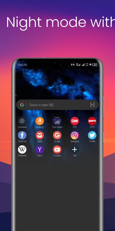 نائٹ موڈ متعدد ویب پیج الٹا رنگوں جیسے نارمل، مکس، بلیک، اور وسٹا کلر کے ساتھ آرام دہ براؤزنگ کا تجربہ پیش کرتا ہے۔