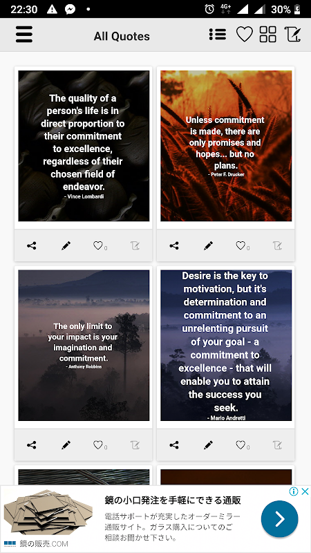 - You can switch between 2 views (image quote view and text quote view) easily.