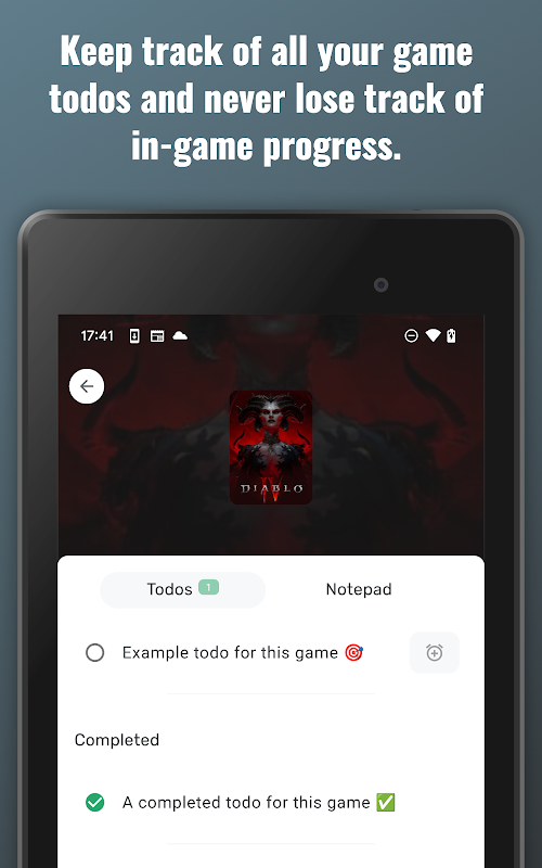 ہمارے بدیہی کویسٹ ٹریکر کے ساتھ، کبھی بھی کسی بھی مشن یا سائڈ کویسٹ سے محروم نہ ہوں۔ ہمارے گیم ٹو ڈاس فنکشن کے ساتھ اپنے گیم سے متعلق کاموں کو مؤثر طریقے سے ترتیب دیں، اس بات کو یقینی بناتے ہوئے کہ آپ کو ہمیشہ اپنی اگلی حرکت معلوم ہو۔ ہماری درون گیم یاد دہانیوں کے ساتھ اپنے گیمنگ کے تجربے کو مزید گہرائی میں ڈالیں، اس بات کو یقینی بناتے ہوئے کہ آپ ہمیشہ اپنے گیم میں سرفہرست ہیں۔
