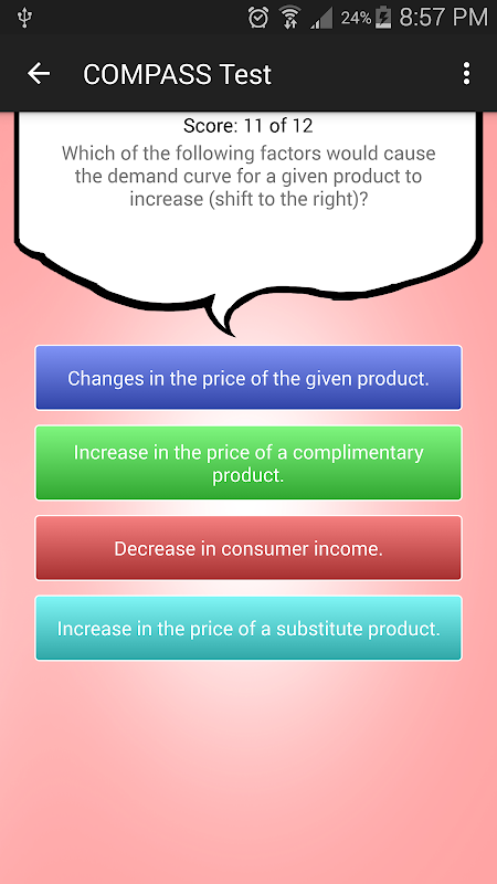 A straightforward app that helps you prepare for the COMPASS Test. Clean and super intuitive user interface design. Focus on studying, not on how to use an app. No internet connection required. No need to carry heavy books or to print bulky note cards.