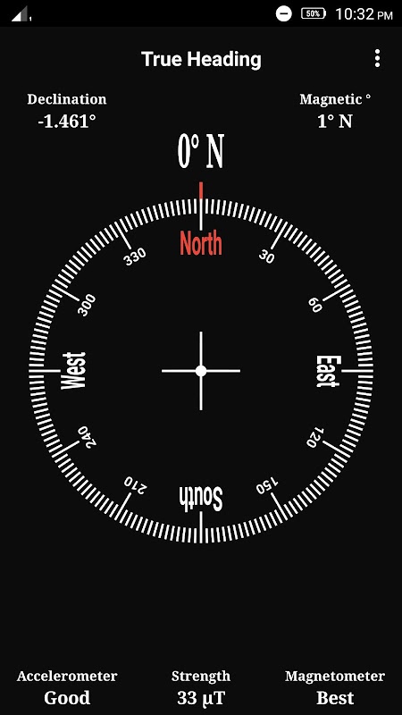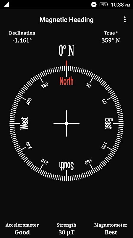 This Compass app shows magnetic heading as well as true heading based on magnetic deflection of the location. This Compass app uses low power location retrieval in case user enables true heading from drop down menu. Shows True North and Magnetic North. This Compass app also shows list of Sensors along with information about Sensor name, Sensor manufacturer/vendor and Accuracy of Sensor. This is a simple and accurate Compass.