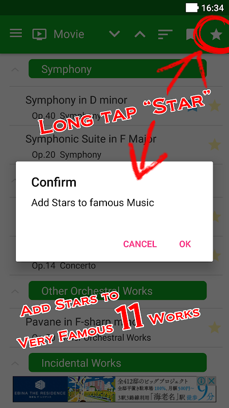 By tapping long, it is possible to attach star marks to all 11 previously registered songs.