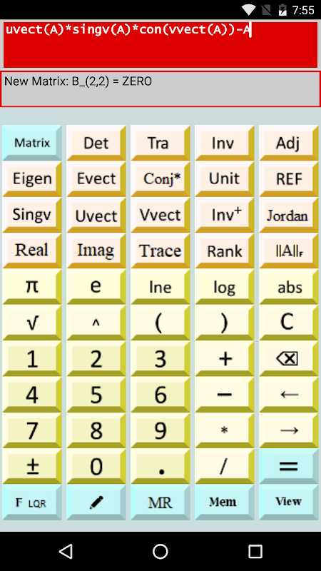 Mathematical calculator for complex numbers and multi-dimensional matrices