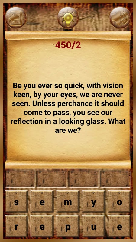 We have always loved riddles and we loved solving them, in this app we collected 450 of the most difficult riddles for you, and you can solve them in one word.