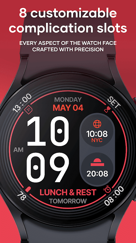 - 8 حسب ضرورت پیچیدگی کے سلاٹس پر مشتمل ہے: متنوع معلومات کے ڈسپلے کے لیے 2 سرکلر، کیلنڈر کے واقعات دکھانے کے لیے بہترین دو لمبے ٹیکسٹ اسٹائل سلاٹس، اور فوری ڈیٹا چیک کے لیے 4 مختصر ٹیکسٹ اسٹائل سلاٹس۔