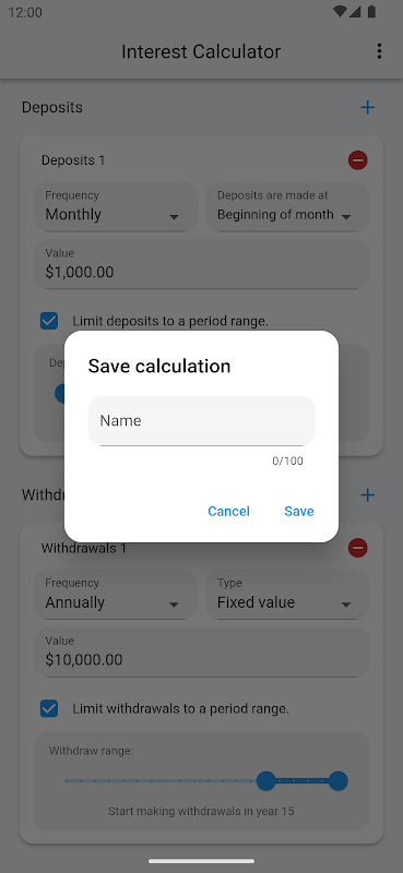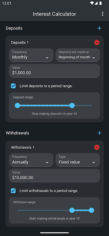 مزید تخصیص کے لیے، 'ایڈوانسڈ موڈ' اضافی خصوصیات پیش کرتا ہے: آپ وقت کے ساتھ ساتھ ایک سے زیادہ ڈپازٹ اور نکال سکتے ہیں، مختلف کمپاؤنڈنگ فریکوئنسیوں (جیسے روزانہ یا سہ ماہی) کا انتخاب کر سکتے ہیں، اور سال میں دنوں کی تعداد کو ایڈجسٹ کر سکتے ہیں۔ مثال کے طور پر، آپ ایک ایسے منظر نامے کی تقلید کر سکتے ہیں جہاں آپ 30 سال کے لیے اہم ماہانہ ڈپازٹ کرتے ہیں، اور پھر بیلنس کے فیصد کی سالانہ رقم نکالنا شروع کر دیتے ہیں۔ یہ کیلکولیٹر اتنا لچکدار ہے۔