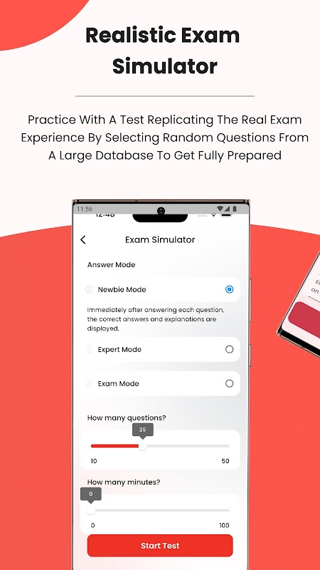• فرضی ٹیسٹ: فرضی ٹیسٹ اصلی ٹیسٹ فارمیٹ کی نقل کرتا ہے۔ جب آپ ٹیسٹ ختم کر لیں گے تو آپ اپنا سکور دیکھیں گے اور تمام سوالات کا جائزہ لیں گے۔