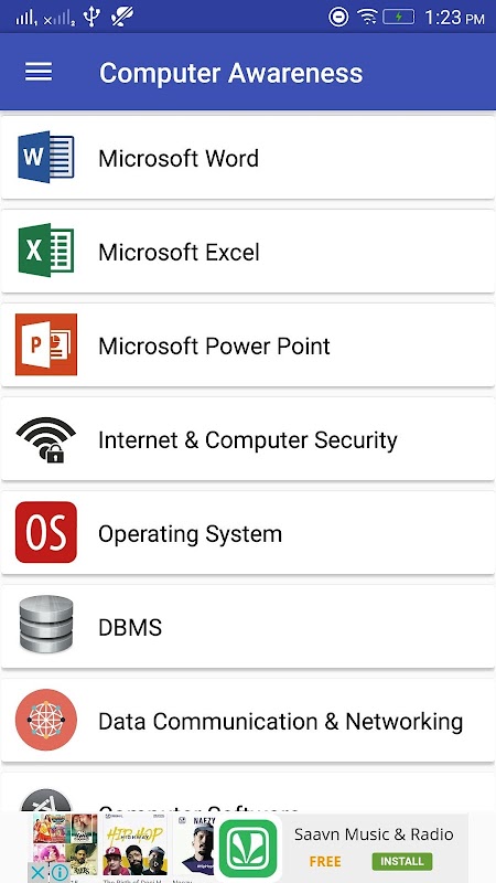 This application(Computer awareness) includes good questions of excel ,word power point, computer software , computer memory,operating system,Internet & computer Security,DBMS, Data Communication & Networking,Input &Output Devices,Computer architecture and Generation of Computer.