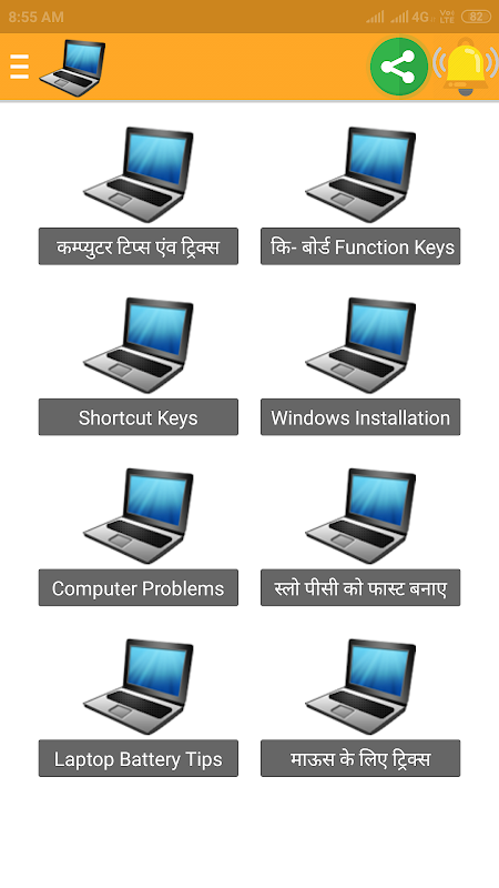 The Technology Tips & Tricks app in hindi is summarized into three categories