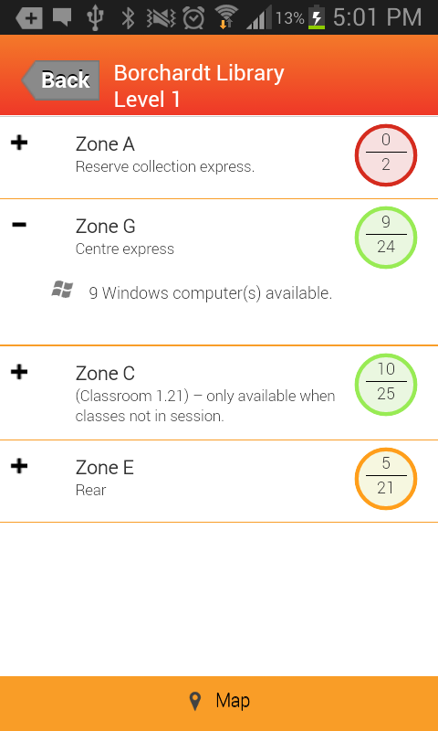 Computers is for La Trobe University students to find computers that are available for use within the Borchardt library in Melbourne (Bundoora). The app displays the level of the library including Zone location and the number of computers available for both PC and Mac’s.