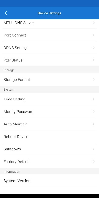 نیٹ ورک کی ترتیبات: IP ، MTU / DNS سرور ، DDNS ترتیبات ، P2P کی حیثیت ، پورٹ کو تبدیل کریں
