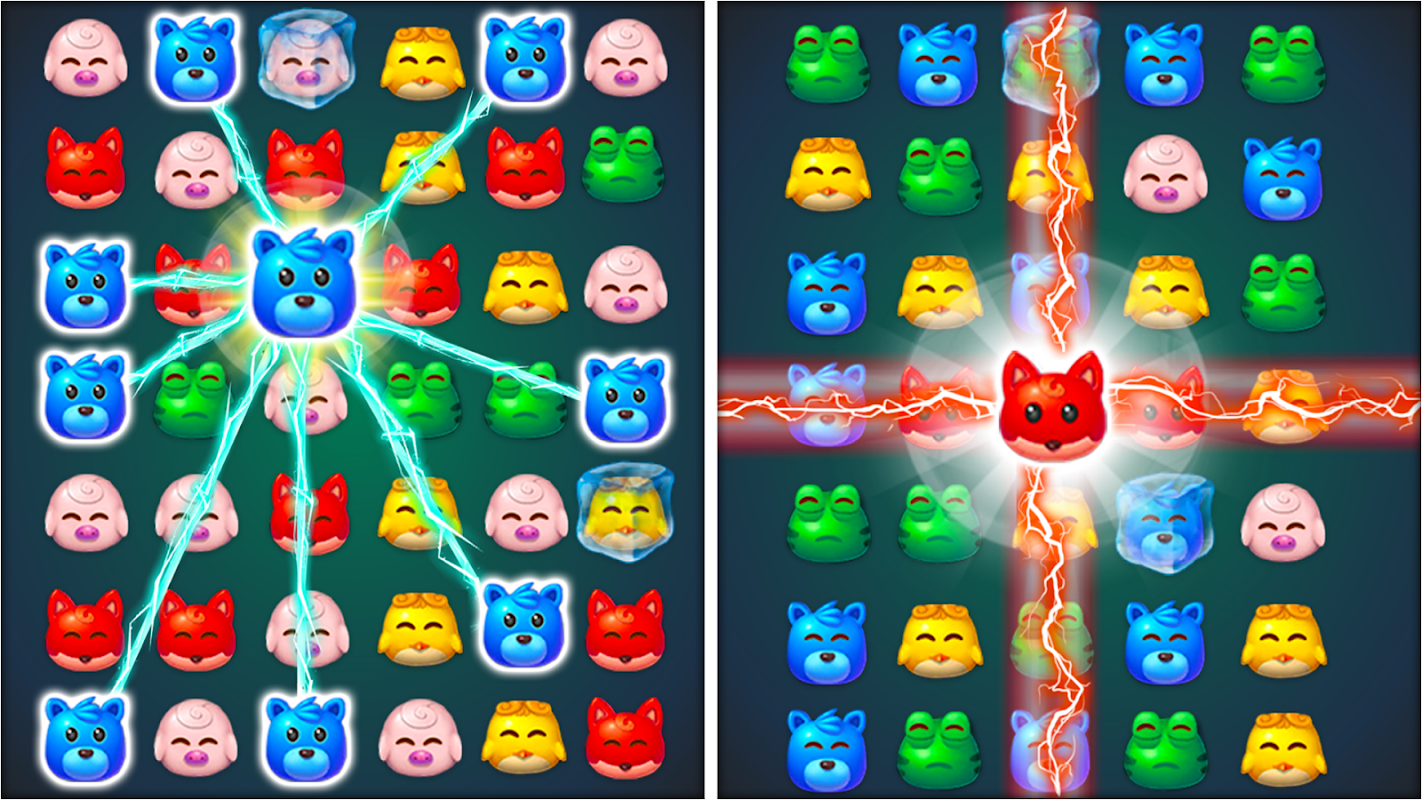😺 جانوروں کو جوڑیں اور ختم کرنے کے لیے ایک ہی رنگ کی 3 یا اس سے زیادہ ایک جیسی جانوروں کی ٹائلیں ملا دیں۔