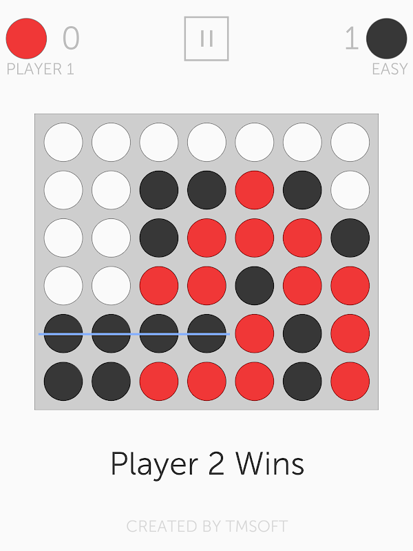 • راؤنڈ ختم ہوتا ہے جب کوئی کھلاڑی ایک لائن میں چار ہو جاتا ہے یا مزید کوئی حرکت نہیں ہوتی ہے۔