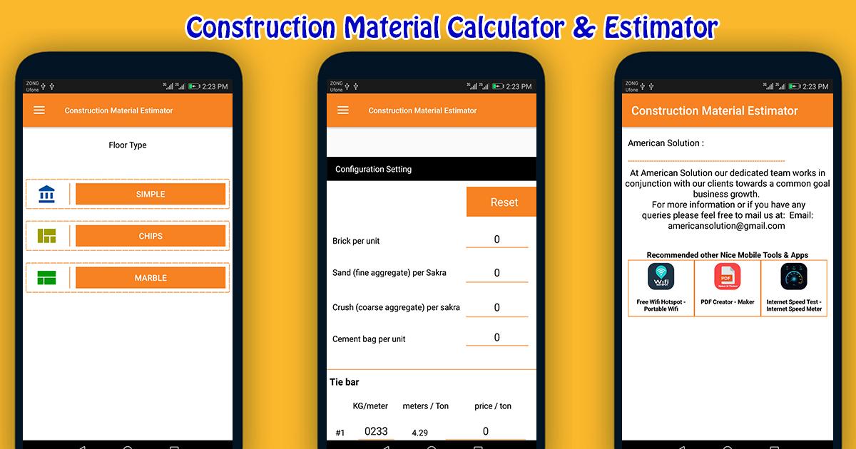 Construction Material Estimator,Construction Calculator, Construction Estimator