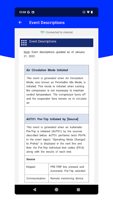 The Carrier Transicold ContainerLINK™ سروس ایپ صارفین اور سروس تکنیکی ماہرین کے لیے انٹرایکٹو وسائل پیش کرتی ہے، بشمول: