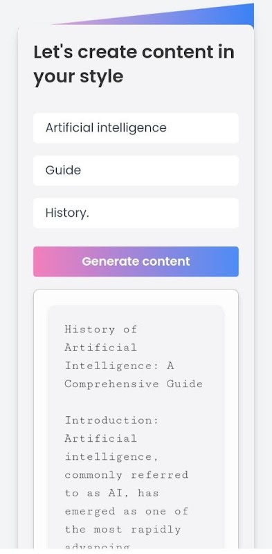 - AI اسٹائل میکر ایسا مواد تیار کرے گا جو آپ کے منتخب انداز اور لہجے سے مماثل ہو، اس بات کو یقینی بناتے ہوئے کہ آپ کا مواد مطلوبہ مزاج اور آواز کی عکاسی کرتا ہے۔