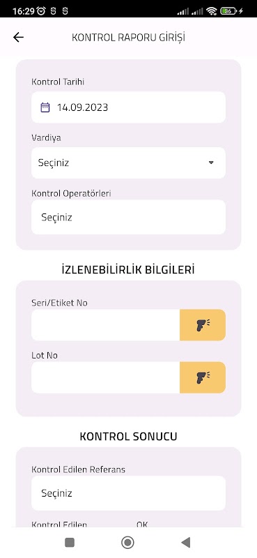 کوالٹی کنٹرول ایپلی کیشن خاص طور پر کنٹریکٹ کوالٹی کنٹرول کے لیے تیار کی گئی ہے، جو آٹوموٹیو انڈسٹری میں مین انڈسٹری اور سپلائر صارفین کو کوالٹی کنٹرول کی خدمات فراہم کرتی ہے۔ ایپلی کیشن پارکنگ لاٹوں میں اہم صنعتی کمپنیوں کے گاڑیوں کے معائنے کے نتائج کو فوری اور آسانی سے آن لائن رپورٹنگ پینل میں منتقل کرنے کے قابل بناتی ہے۔ اسی طرح، اسمبلی لائن کے اختتام پر کئے جانے والے گاڑیوں کے معائنے کے دوران، گاڑی کی کنفرمٹی سٹیٹس اور چیسس نمبر کو اسکین کرکے آن لائن رپورٹنگ سسٹم میں منتقل کیا جاتا ہے۔