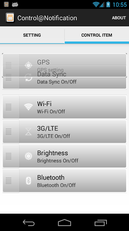 Control@Notification can toggle WiFi, 3G/LTE, Sync...