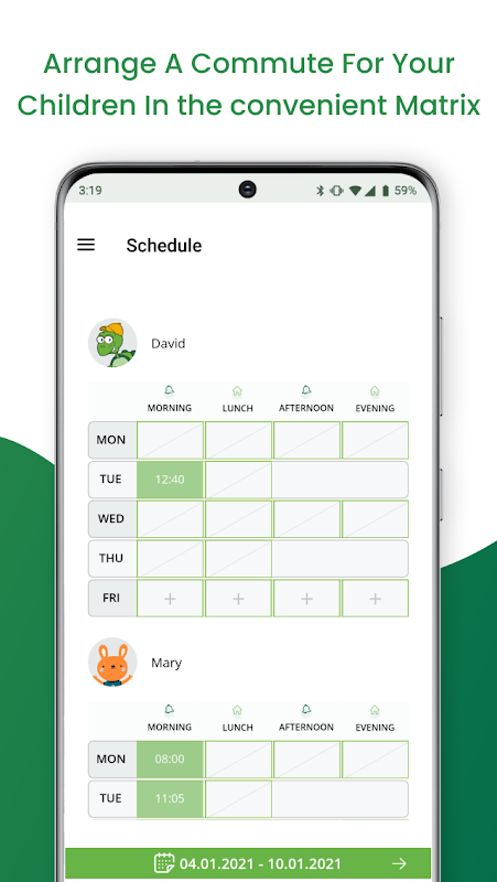 موجودہ درخواست والدین کے لئے اسکول جانے / جانے والے بچوں کے سفر کے انتظام کے حل کا ایک حصہ ہے۔