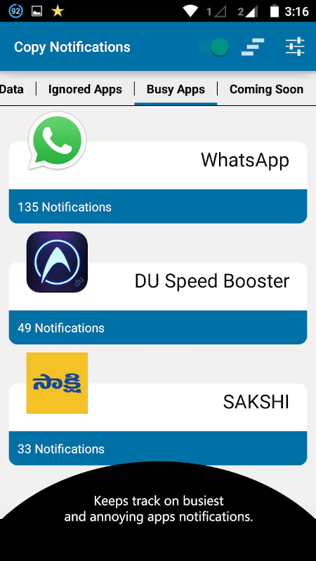 *Option to filter insignificant app's notifications by marking them as "Spam" and "Ignore"