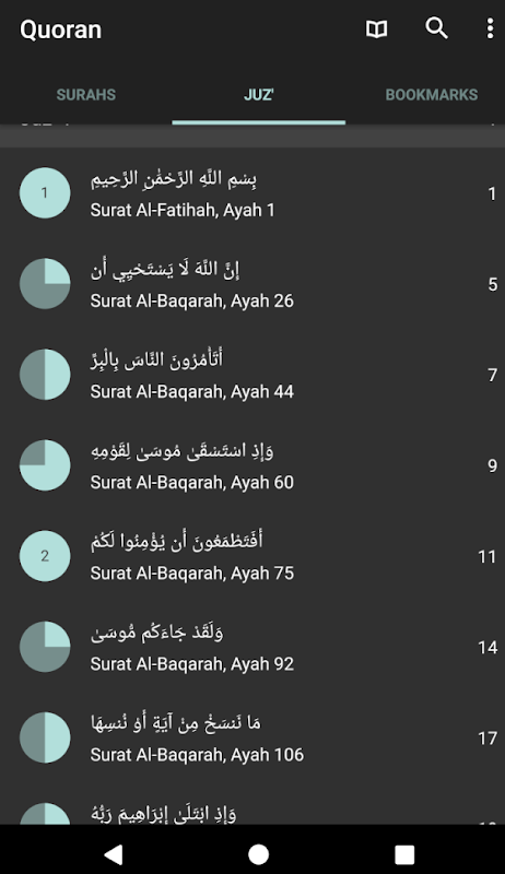 Coran reader with audio and full text view