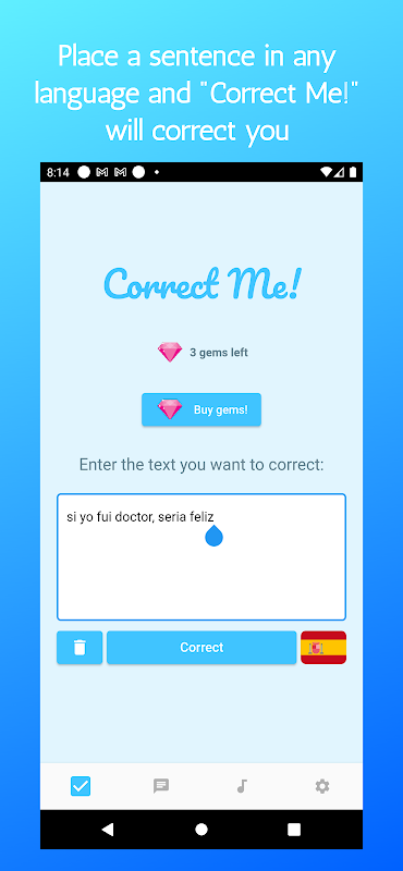 Correct me! is an app that corrects every sentence you put in any language and explains the error to you in your native language so you can learn and improve your language learning!