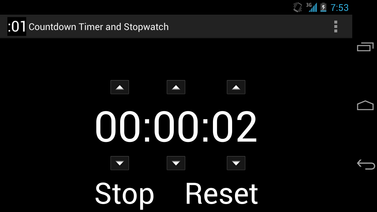 A simple countdown timer and stopwatch, to use it as a stopwatch set the timer to 00:00:00 (default) and press start. To use it as a count down set the timer to anything other then 00:00:00 and press start. Note this app does not use permissions and is not designed to be run in the background.