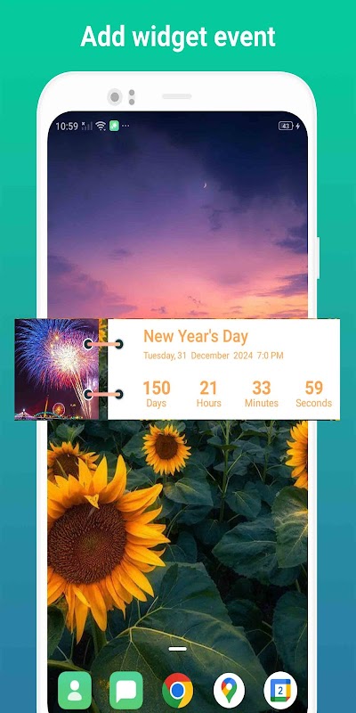 صارف کرسمس کاؤنٹ ڈاؤن، برتھ ڈے کاؤنٹ ڈاؤن، نئے سال کی الٹی گنتی، تعطیلات کی الٹی گنتی، عادت اور فٹنس الٹی گنتی کے بارے میں الٹی گنتی ایونٹ بنا سکتا ہے۔