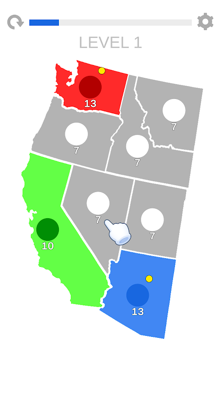 امریکی ریاستوں میں سے ایک پر آپ کے دانشمندانہ کنٹرول کے تحت، جیتنے کے لیے آپ کو تمام ریاستوں کو مخالفین سے آزاد کرنے کی ضرورت ہے۔ سطح کے آغاز میں، آپ کو غیر مقبوضہ ریاستوں پر حملہ کرنا چاہیے، فوجیں جمع کرنا چاہیے اور انھیں ان ریاستوں میں بھیجنا چاہیے جو ابھی تک آزاد نہیں ہوئیں۔ اگر دشمن کے پاس آپ کی کسی بھی ریاست کے مقابلے میں ایک ریاست میں بہت زیادہ فوج ہے، تو آپ اپنے کنٹرول میں کئی ریاستوں کا انتخاب کر سکتے ہیں اور دشمن کو زبردست دھچکا لگا سکتے ہیں۔