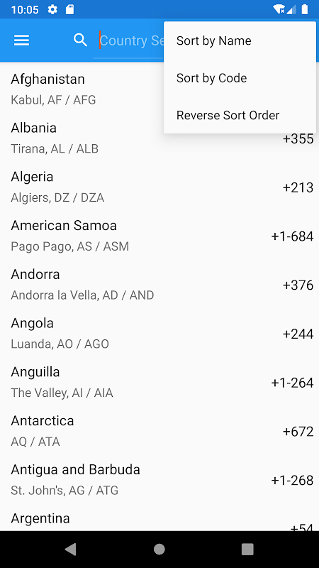 کنٹری کالنگ کوڈز، کنٹری ڈائل ان کوڈز، انٹرنیشنل سبسکرائبر ڈائلنگ (ISD) کوڈز، یا عام طور پر، ٹیلی فون کنٹری کوڈز بین الاقوامی ٹیلی کمیونیکیشن نیٹ ورکس کے ذریعے غیر ممالک یا علاقوں میں ٹیلی فون صارفین تک پہنچنے کے لیے ٹیلی فون نمبر کے سابقہ ہیں۔ اس ایپلی کیشن میں ISO2/ISO3 کوڈز بھی شامل ہیں۔