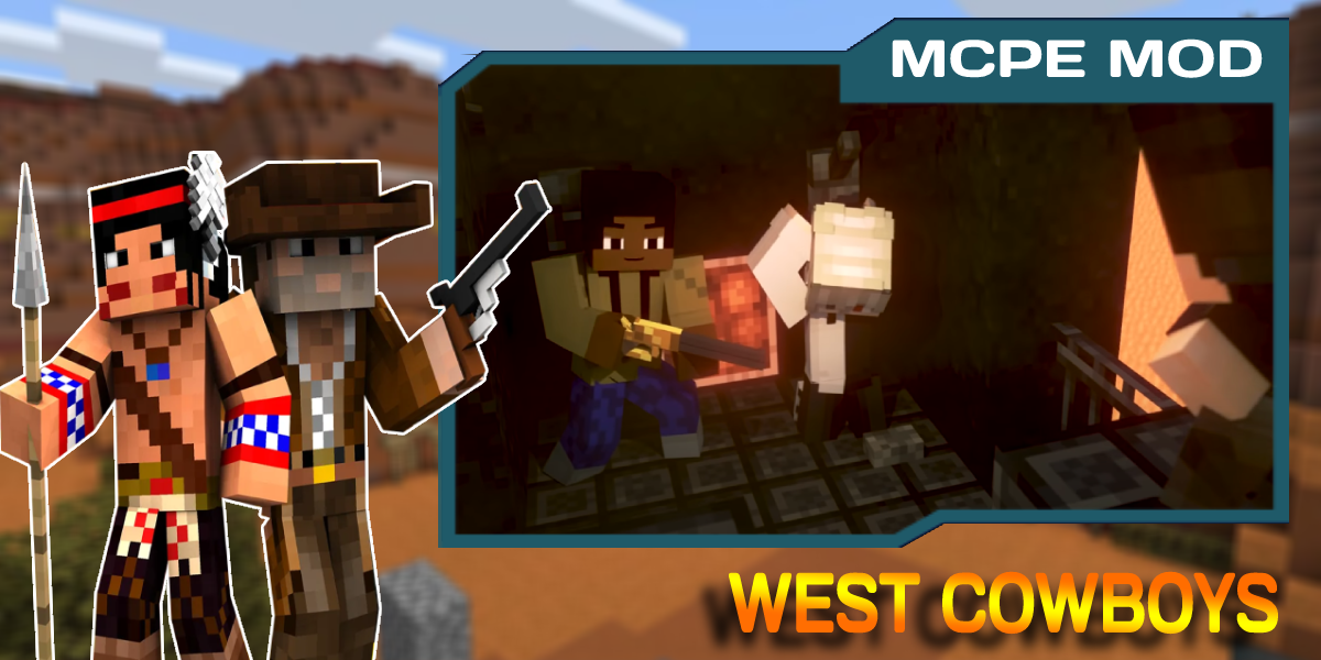 Cowboy mod is a cool wild west style world for all western lovers. Here you will find unique buildings, houses, emerald blocks, treasures with bonuses and dangerous creatures. Craft your own weapons, revolvers and armor for bar shootouts. Train your horses and use them instead of transport or to race across the biome, gather a team of friends and rob the most famous bank in the wild west, and get rare ore and gold, but be careful, the Sheriff can make a trap, catch you and send you to jail. There you can try to organize an escape and become the most legendary cowboy in a western. This is the best addon for 2 player game. Here you will find real adventures and exciting battles for power in the city!