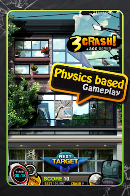 The arcade game for destroying windows by throwing various objects.