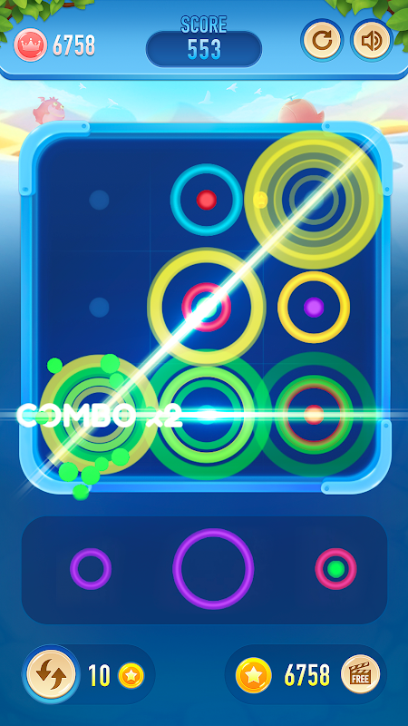 * Remove the rings by making horizontal, vertical, or diagonal line has the same color.
